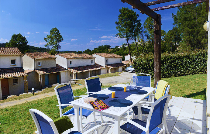 Die Ferienanlage liegt naturnah am südlichen Ortsrand von Salavas. Sie ist großzügig und weitläufig gestaltet und bietet zwei große Pools, einen Spielplatz sowie einen Multifunktions-Sportplatz. Die Wohnungen sind eher funktional ausgestattet und verfügen jeweils über einen eigenen Freisitz.