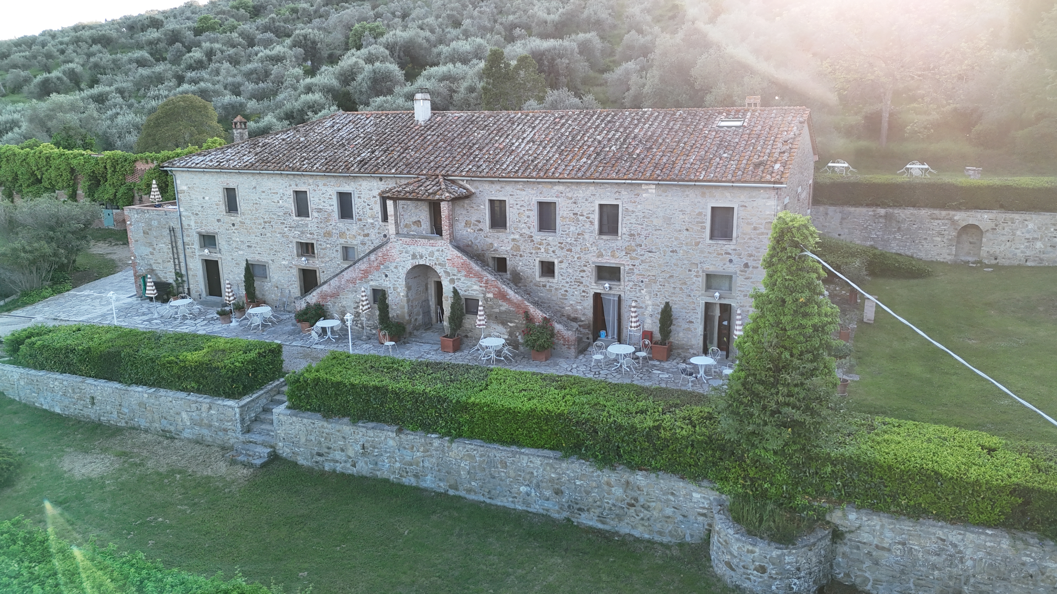Im Herzen Italiens, umgeben von unberührter Natur, liegt der Trasimenischen See, der mit fast 200 km Uferlinie größte Binnensee Mittelitaliens. Am Nordufer des Sees, zwischen sagenhaft schönen Städtchen, Olivenhainen und Weinbergen steht die denkmalgeschützte Zollstation „La Dogana“. Wundervoll ist der Blick von den Hügeln auf die schimmernde Wasserfläche des Sees mit seinen grünen, weitgehend unverbauten Ufern, den Fischerbooten und den drei charakteristischen Inseln. Im ehemaligen Gästehaus der Zollstation, inmitten eines weitläufigen Geländes mit Liegewiesen, Panorama-Swimmingpool mit Seeblick und nahen Pferdekoppeln, liegen unsere elf stilvoll eingerichteten Ferienwohnungen. Zu jeder Wohnung gehört auch ein Außenbereich mit Sitzgelegenheiten. La Dogana ist eine sehr naturnahe Anlage. Hier gibt es vom See und den toskanischen Hügel, über den großen Park bis hin zu Begegnungen mit verschiedenen Tieren (Pferden, Hühnern, Katzen etc.) für Kinder und Eltern viel zu entdecken. „La Dogana“ ist unser Quartier mit den wohl vielseitigsten und bequemsten Ausflugsmöglichkeiten. Umbrien und die Toskana liegen direkt vor Ihrer Haustür. Montepulciano und Perugia, mit ihren mittelalterlichen Stadtzentren sind dank der nahen Autobahn in weniger als einer halben Stunde, Florenz oder Rom als Tagesausflug mit der Bahn, rasch zu erreichen. Rings um den See finden sich mit Cortona, Passignano oder dem Fischerort Castiglione ebenfalls reizvolle Ausflugsziele.